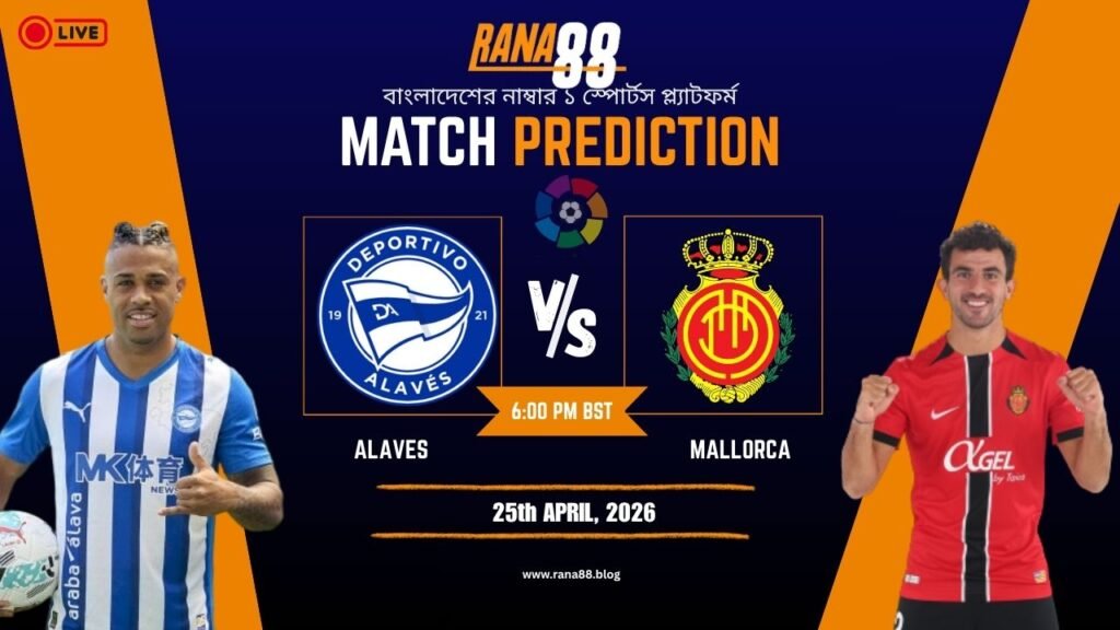 Alavés vs Mallorca ম্যাচটি লা লিগা রাউন্ড ৩৩-এ একটি গুরুত্বপূর্ণ ও প্রতিদ্বন্দ্বিতাপূর্ণ লড়াই হতে যাচ্ছে, যেখানে Deportivo Alavés মুখোমুখি হবে RCD Mallorca-এর। দুই দলই লিগে গুরুত্বপূর্ণ পয়েন্ট অর্জনের লক্ষ্যে মাঠে নামবে, তাই ম্যাচটি বেশ প্রতিযোগিতামূলক হওয়ার সম্ভাবনা রয়েছে। আলাভেস নিজেদের হোম গ্রাউন্ডে সংগঠিত ডিফেন্স ও নিয়ন্ত্রিত খেলার মাধ্যমে সুবিধা নিতে চাইবে, অন্যদিকে মায়োর্কা দ্রুত আক্রমণ ও মিডফিল্ড কন্ট্রোলের মাধ্যমে ম্যাচে প্রভাব ফেলতে পারে।