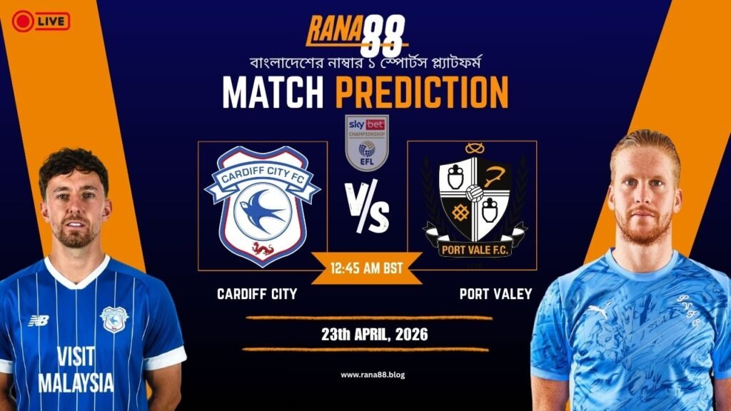 Cardiff City vs Port Vale ম্যাচটি Cardiff City Stadium-এ অনুষ্ঠিত হতে যাওয়া একটি গুরুত্বপূর্ণ ও প্রতিদ্বন্দ্বিতাপূর্ণ লড়াই। Cardiff City নিজেদের মাঠের সুবিধা কাজে লাগিয়ে আক্রমণাত্মক ফুটবল খেলে ম্যাচে আধিপত্য বিস্তার করতে চাইবে, অন্যদিকে Port Vale সংগঠিত ডিফেন্স ও দ্রুত কাউন্টার অ্যাটাকের মাধ্যমে প্রতিপক্ষকে চাপে ফেলতে প্রস্তুত থাকবে। দুই দলই গুরুত্বপূর্ণ পয়েন্ট অর্জনের লক্ষ্যে মাঠে নামবে, তাই Cardiff City vs Port Vale ম্যাচটি উত্তেজনাপূর্ণ হওয়ার সম্ভাবনা রয়েছে।
