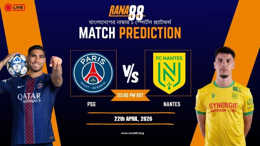 PSG vs Nantes ম্যাচটি ফরাসি লিগের একটি গুরুত্বপূর্ণ ও আকর্ষণীয় লড়াই হতে যাচ্ছে। PSG নিজেদের মাঠে আক্রমণাত্মক ও পজিশন-ভিত্তিক ফুটবল খেলেই ম্যাচে আধিপত্য বিস্তার করতে চাইবে, যেখানে তাদের তারকাখচিত স্কোয়াড বড় ভূমিকা রাখবে। অন্যদিকে Nantes সংগঠিত ডিফেন্স ও দ্রুত কাউন্টার অ্যাটাকের মাধ্যমে প্রতিপক্ষকে চাপে ফেলতে প্রস্তুত থাকবে। দুই দলই গুরুত্বপূর্ণ পয়েন্টের জন্য লড়বে, তাই ম্যাচটি উত্তেজনাপূর্ণ হওয়ার সম্ভাবনা রয়েছে।