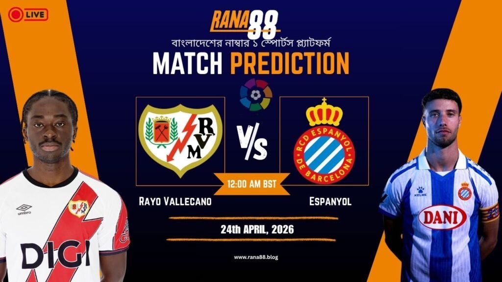 Rayo Vallecano vs Espanyol ম্যাচটি লা লিগার একটি গুরুত্বপূর্ণ ও প্রতিদ্বন্দ্বিতাপূর্ণ লড়াই হতে যাচ্ছে। Rayo Vallecano নিজেদের মাঠে আক্রমণাত্মক ফুটবল খেলে ম্যাচ নিয়ন্ত্রণ করতে চাইবে, অন্যদিকে Espanyol সংগঠিত ডিফেন্স ও দ্রুত কাউন্টার অ্যাটাকের মাধ্যমে প্রতিপক্ষকে চাপে ফেলতে প্রস্তুত। দুই দলই গুরুত্বপূর্ণ পয়েন্ট অর্জনের লক্ষ্যে মাঠে নামবে, তাই ম্যাচটি উত্তেজনাপূর্ণ হওয়ার সম্ভাবনা রয়েছে।